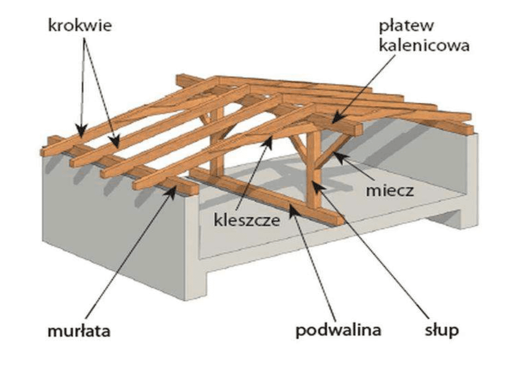 Więźba dachowa to drewniana konstrukcja składająca się z krokwi, belek, murłat, płatwi, jętek, słupów, mieczy, przepustnic, która pozwala przenieść ciężar własny konstrukcji oraz ciężar pokrycia dachowego na ściany budynku. Więźba wpływa na wytrzymałość oraz kształt całego budynku. Dlatego drewno na więźbę dachową musi być bardzo wytrzymałe i solidnie przygotowane. Dlatego poleca się użycie sosny, świerku, modrzewia lub jodły. Warto dodać że mamy kilka rodzai więźby dachowej – jakie wyróżniamy?